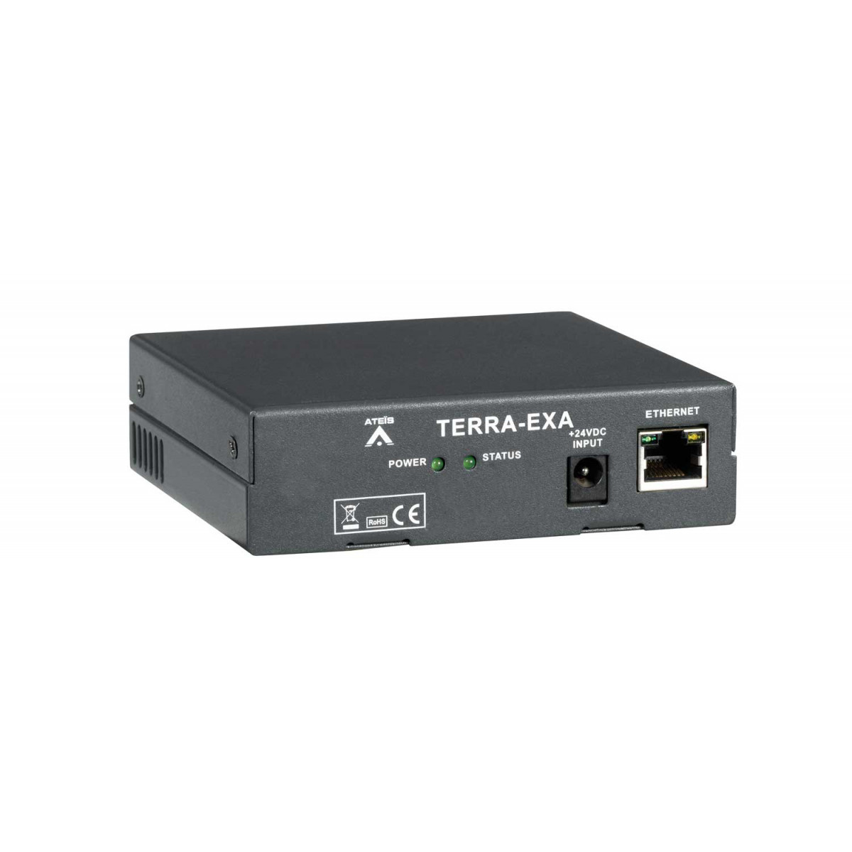 TERRA-EXA is the same as the TERRA-EX, an IP, POE audio decoder; it is a very cost effective solution for a wide range of applications. It comes with 2 balanced line outputs, 1 relay output and 3 control input contacts making the TERRA-EXA an ideal IP solution for any applications that require a simple device to take digitized audio from a network and provide a powered, analogue output with I/O control.