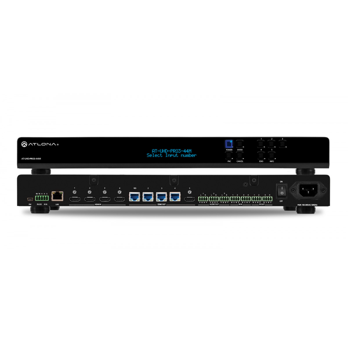 The AT-UHD-PRO3-44M is part of the Atlona UHD-PRO3 Series of HDMI to HDBaseT matrix switchers, ideal for residential as well as commercial applications. The UHD-PRO3 Series offers performance, reliability, and powerful control and audio system integration features.