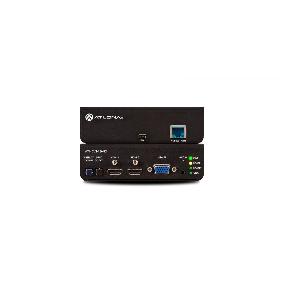 The AT-HDVS-150-TX is part of the Atlona HDVS Series of HDBaseT extenders with AV switching and scaling, plus automatic display control and automatic input selection.