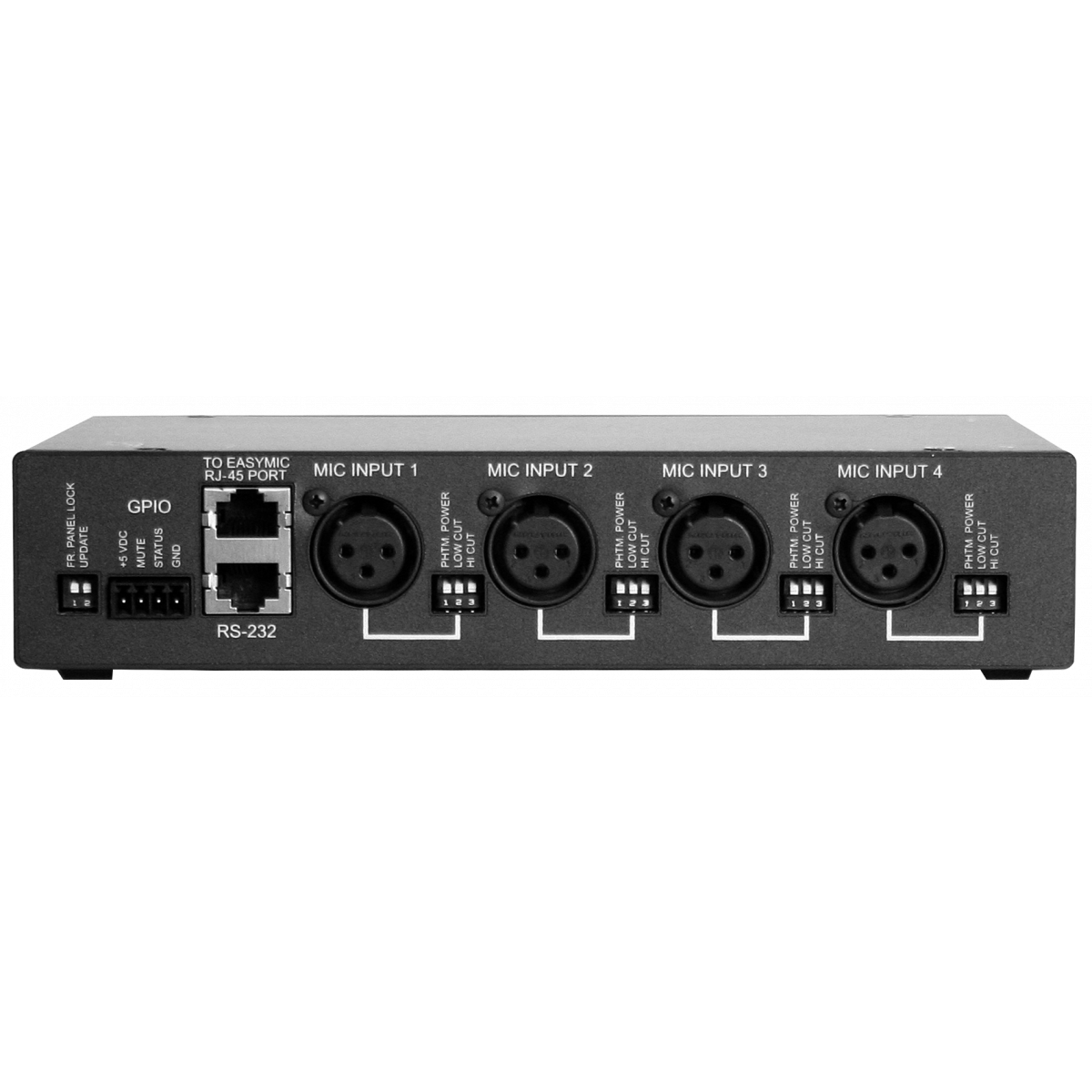 - Four (4) XLR mic level inputs with assignable phantom power, high and low cut filters, GPIO and front panel lockout